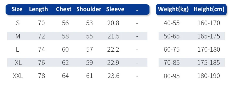 | Size | S - 2XL or Customized |