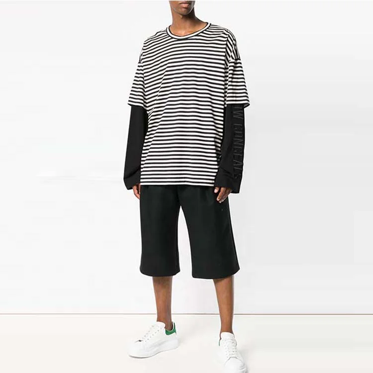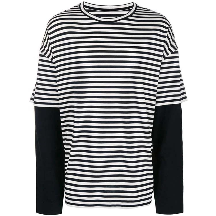 Home » Products » T-shirt » Custom Double Layer Long Sleeve Stripe T Shirt