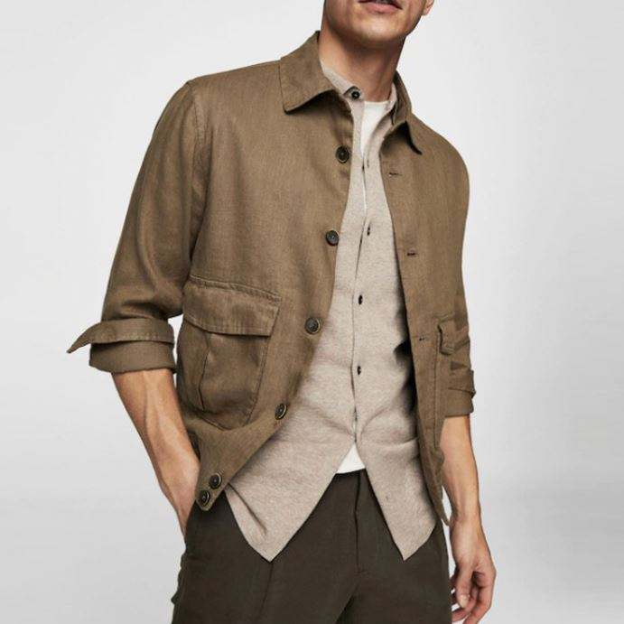 Home » Products » Jacket » Custom Logo Design Linen Blend Classic Collar Jacket Long Sleeve With Buttoned Cuffs Pockets Men's Jackets