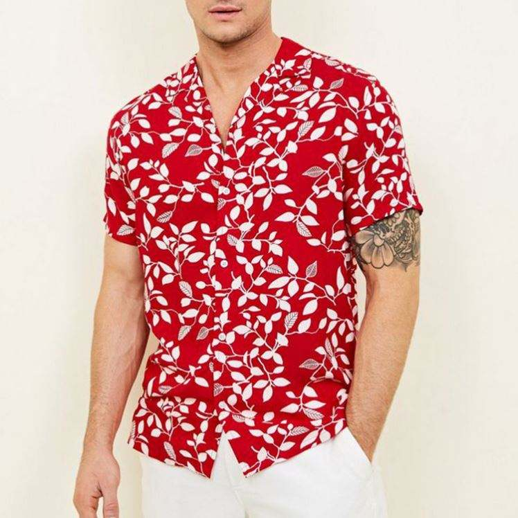 Home » Products » Shirt » OEM Manufacturer Casual Hawaiian Red Leaf Print Short Sleeve Men Shirt