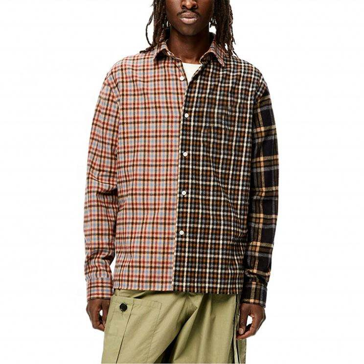 Home » Products » Shirt » OEM Manufacturer Custom Long Sleeve Men's Two Tone Color Block Plaid Checked Vintage Flannel Shirt
