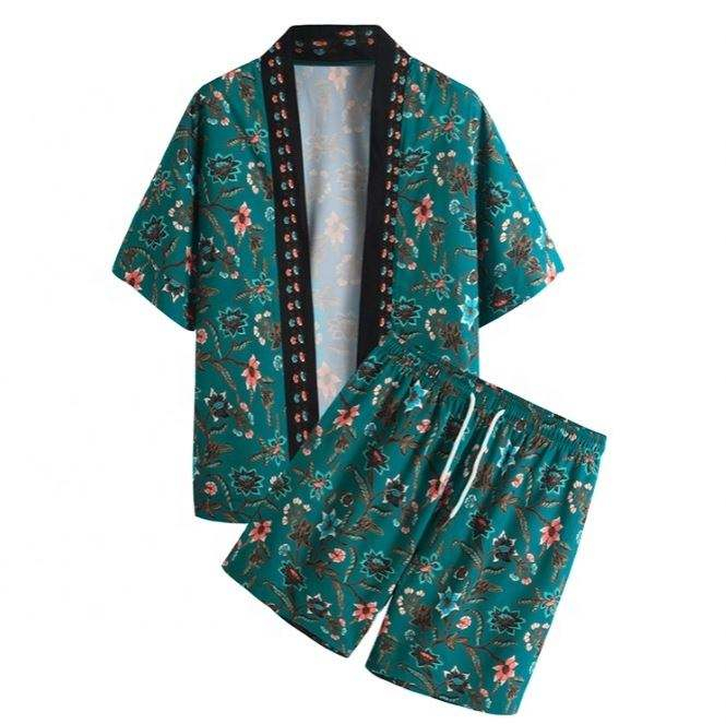 OEM Manufacturer Customized Thin Men Clothing Set Beach Printing Cardigan Shirts And Shorts Casual Men Short Set