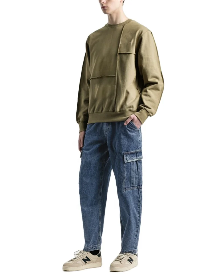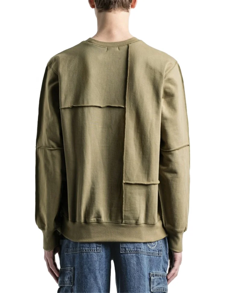 Home » Products » Sweatshirt » Wholesale Men's Cut & Sew Panel Light Olive Plain Crewneck Sweatshirts