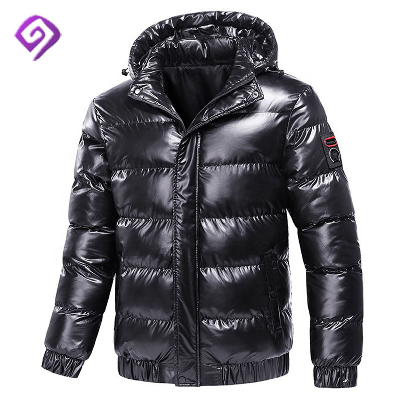 Producent OEM Zimowy płaszcz z podszewką na zewnątrz, czarny, błyszczący, niestandardowy, męski gruby, pikowany puchowy płaszcz puchowy