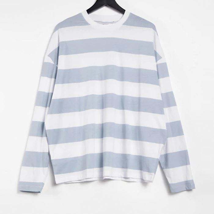 Veľkoobchodný predaj vysokokvalitné pánske tričko z prémiovej bavlny pre mužov s pásikavými ramenami a plným rukávom