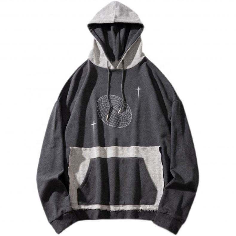 บ้าน » สินค้า » เสื้อฮู้ด » ผู้ผลิต OEM ปรับแต่งบล็อกสีการเย็บปะติดปะต่อกันความทุกข์สบาย ๆ เสื้อสเวตเตอร์แบบกำหนดเองขนาดบวก Hoodies ผู้ชาย