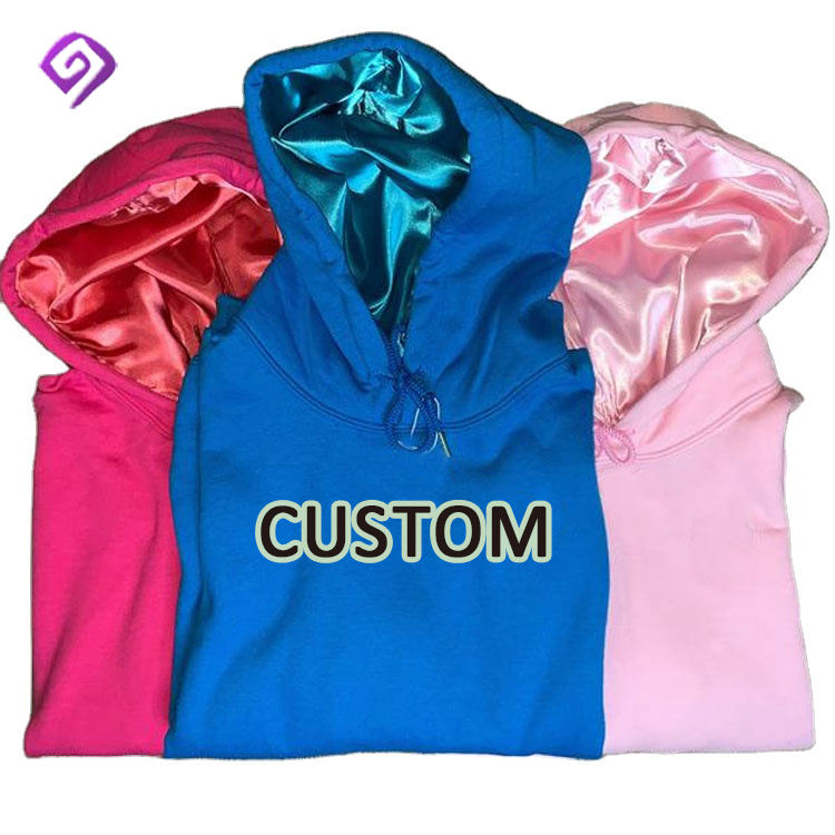 OEM Високоякісна оверсайз унісекс розкішна шовкова однотонна чоловіча толстовка на замовлення з атласною підкладкою та атласним капюшоном